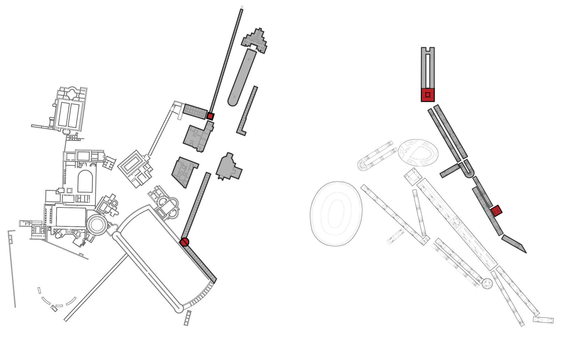In the fifteenth century, the architect Leon Battista Alberti said that a house is a small city and a city is a large house. Our proposal for the Budapest South Gate masterplan design competition develops Alberti’s idea of the city to introduce a dynamic new urban form for this evolving city on the Danube. The traditional forms of urban organization are the grid – such as in Barcelona – and concentric rings – as in Vienna. Budapest South Gate is an opportunity to leave behind these holistic urban forms and to introduce a new form of urbanism derived from Villa Adriana, the palazzo built by Hadrian in the second century. The plan of this sprawling villa, with its multiple axes and hinges (szanérok), introduces movement through buildings and landscape that suggests a model for a more diverse and complex form of urbanism. For Budapest, the spaces between the volumetric axes and hinge buildings that result from this model allow for a landscape urbanism that creates a healthier, more ecological environment. In the plan of an ancient villa, we find a model for a twenty-first-century city.